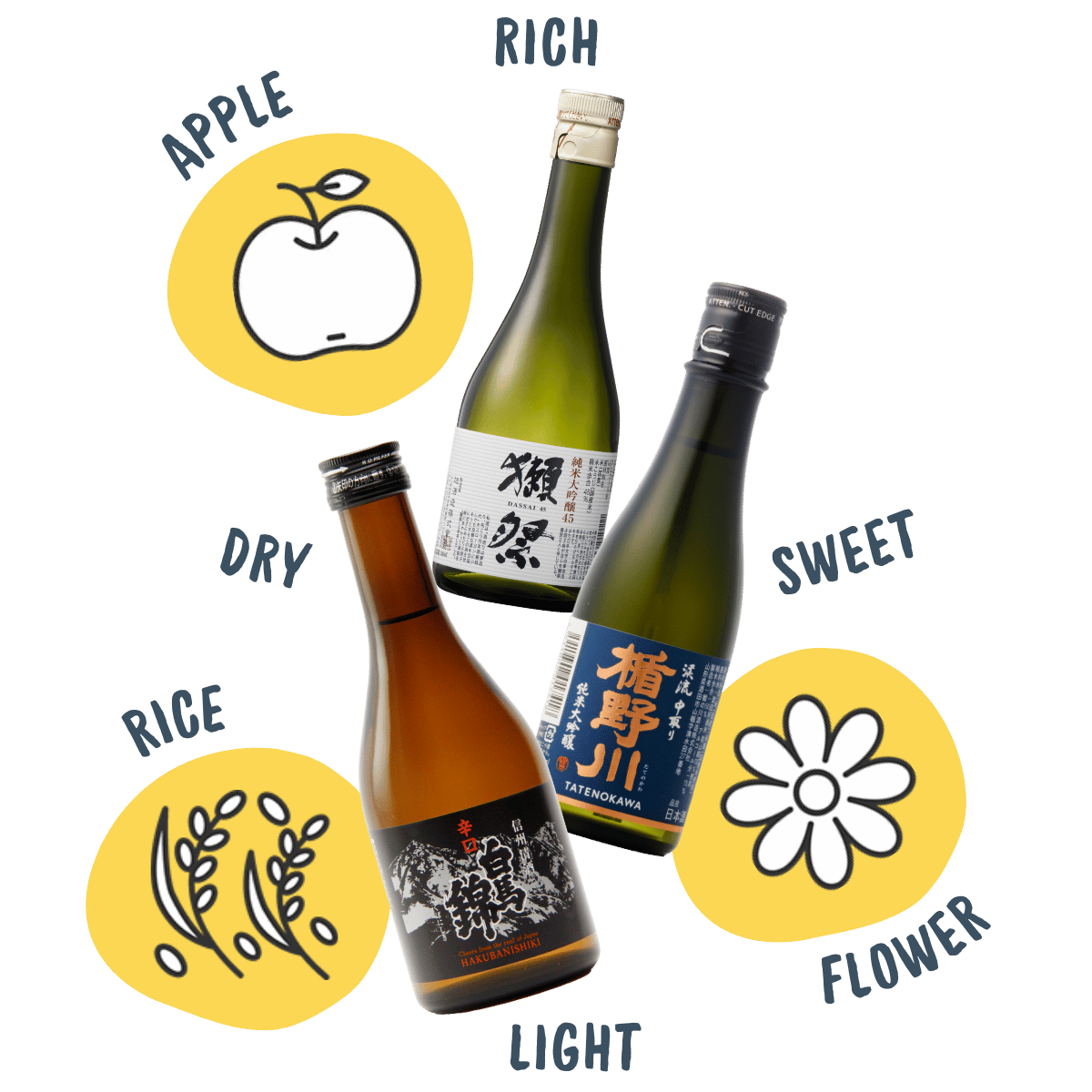 Your recommended mini-bottle set comes with three sake to help you explore your flavor category more deeply.
