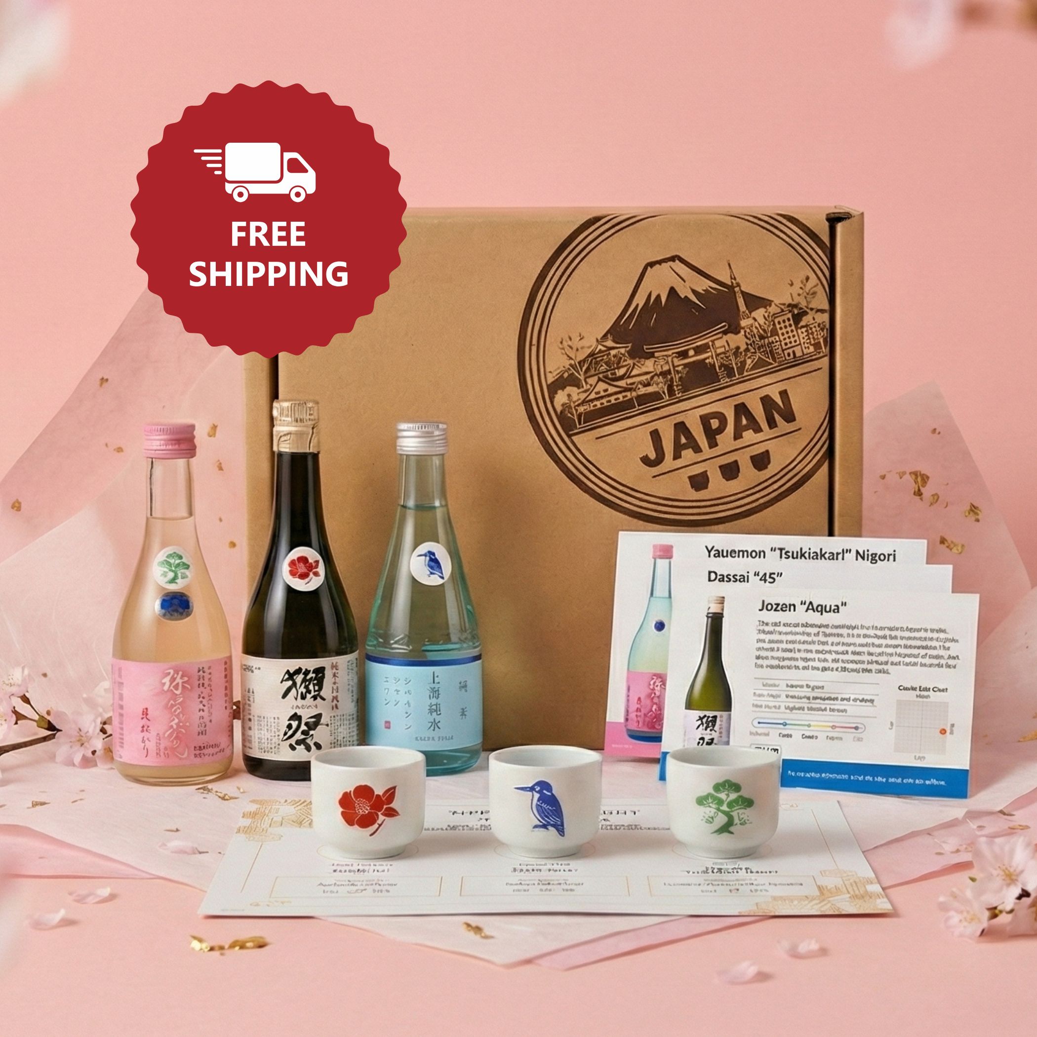 Toast your special someone with some bubbly! Three different sparkling sake from three different brands — the perfect sampler set.